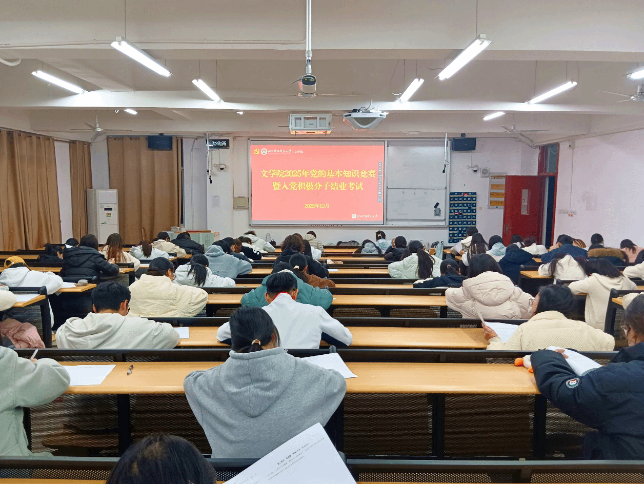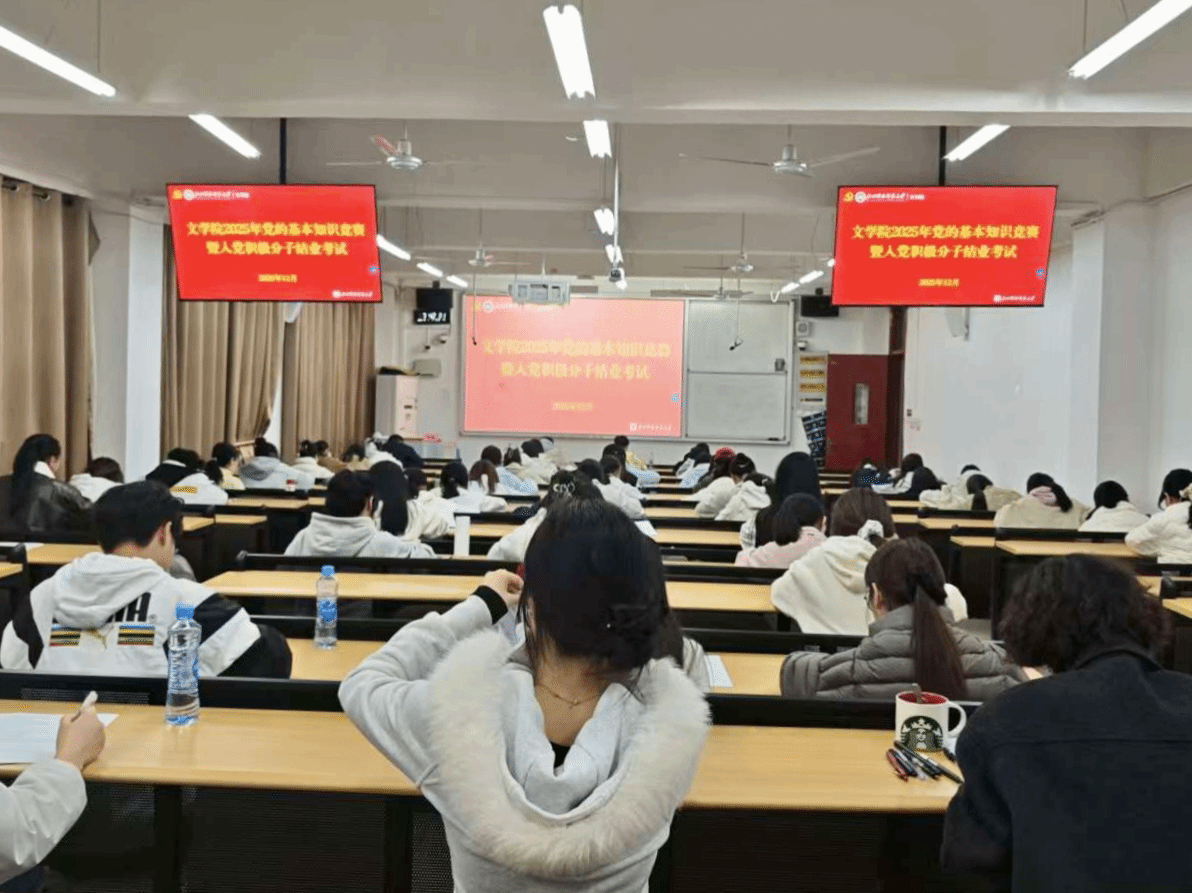 12月1日下午,文学院在W1102、W1109教室举办2025年党的基本知识竞赛暨入党积极分子结业考试,全体入党积极分子参加。