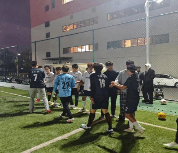 小组赛首战,文学院以5:1大胜对手。进攻端多点开花,门将屡献神扑,共同锁定胜局。第三轮,球队3:1再下一城,凭借精彩的远射与巧妙的配合拿下关键胜利,最终以小组头名出线。进入淘汰赛,球队攻势如虹,以5:1的比分完胜强敌,挺进四强。虽然在半决赛中以2:4憾负,但球员们全程展现了强劲的竞技实力和顽强的拼搏精神。
