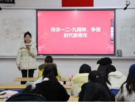 为铭记红色历史根脉,厚植爱国情怀,引导青年学子从一二·九运动精神中汲取奋进力量。2025年12月5日,文学院“红五星”大学生宣讲团于W1106、W1201教室开展“传承一二·九精神,争做时代新青年”主题宣讲活动。